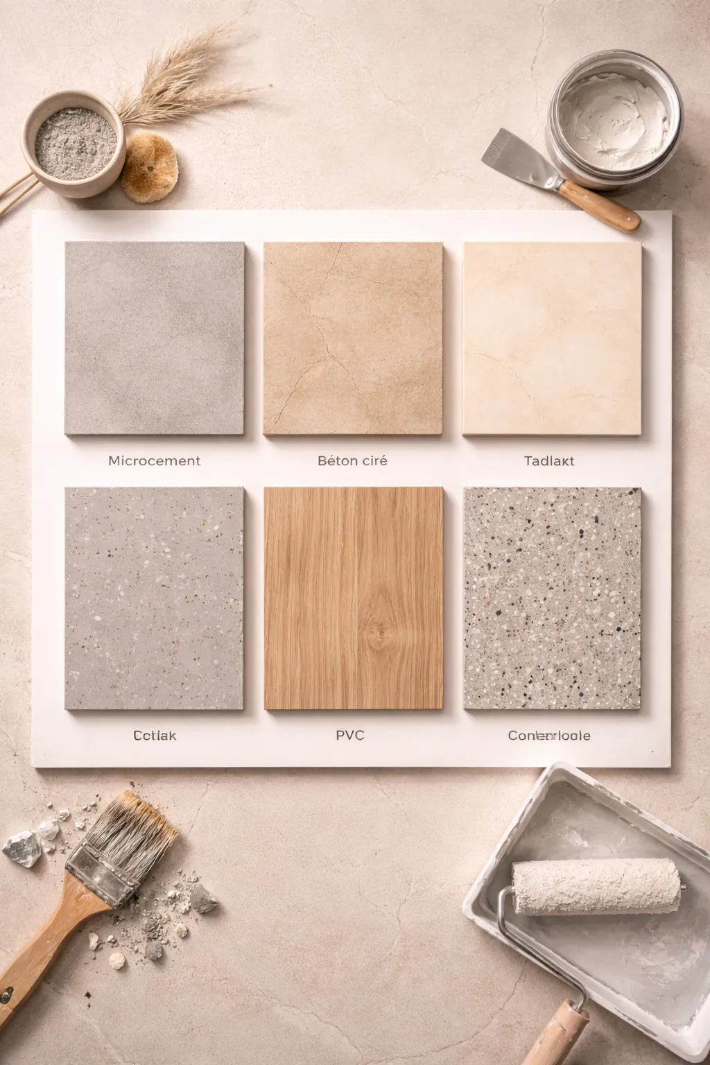 Een cement-/mortelachtige afwerking met betonlook, vaak in lagen opgebouwd en afgewerkt met een beschermende coating. Beton ciré wordt soms als “microcement” gepresenteerd, maar systemen verschillen per merk.