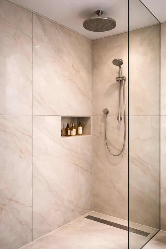 De truc is om te kiezen voor materialen en bevestigingen die badkamerproof zijn: vochtbestendig, stevig en makkelijk schoon te maken.
